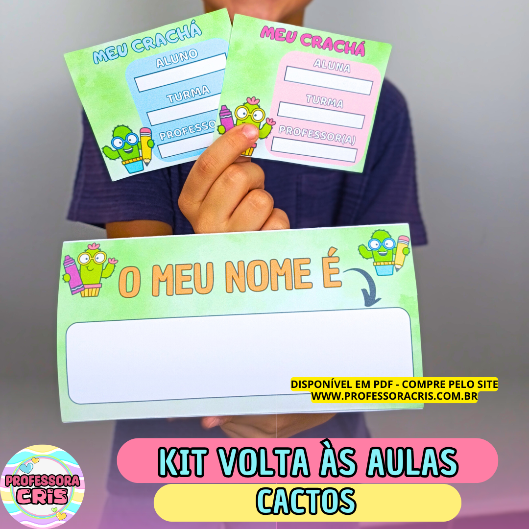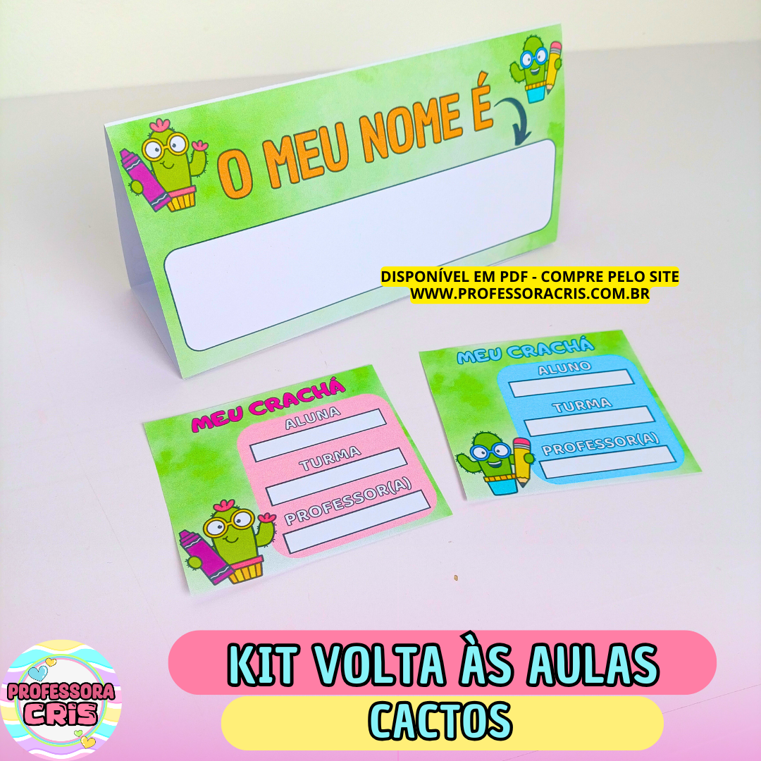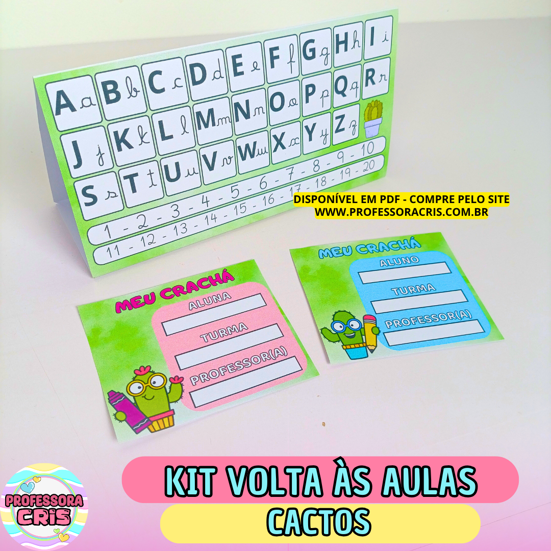 👉 Crachá de mesa (com espaço para o nome do aluno na frente; alfabeto bastão e cursivo e números no verso)